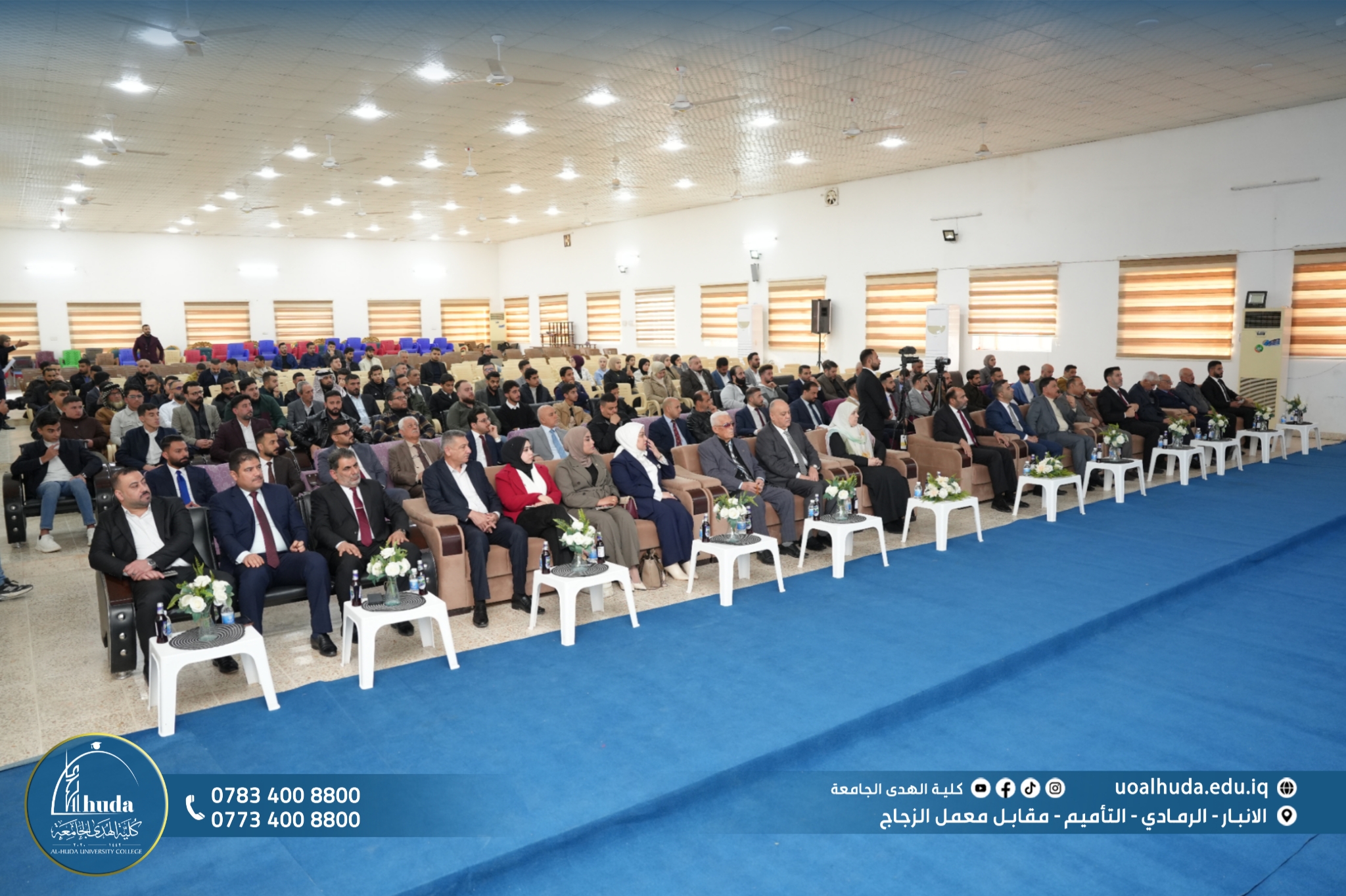 The conference was attended by the Dean of Al-Huda University College, Professor Dr. Omar Abdulkareem Jassim, accompanied by the Administrative Assistant and the Head of the Continuing Education and Training Unit, reaffirming the College’s commitment to supporting youth initiatives and strengthening partnerships with community institutions.